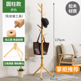 木马人实木衣帽架衣架落地简易卧室客厅挂衣架立式衣服架子办公室现代简约鞋架多层室内收纳架置物架 圆柱款-原色