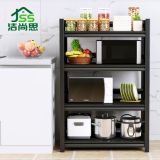 洁尚思 厨房置物架围栏款 高密度碳钢不锈烤漆 储物家具收纳架厨房置物架落地多层微波炉烤箱置物架 碳钢加厚 三层 高80CM 长60宽35-带围栏