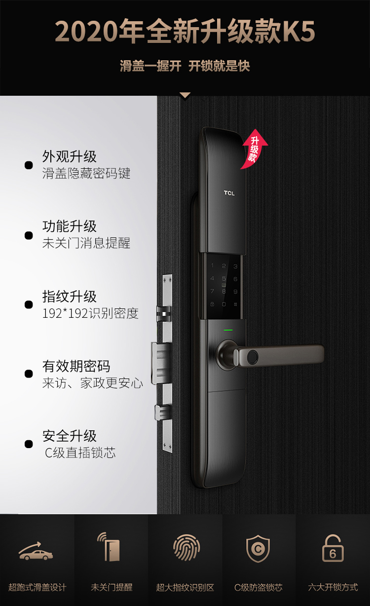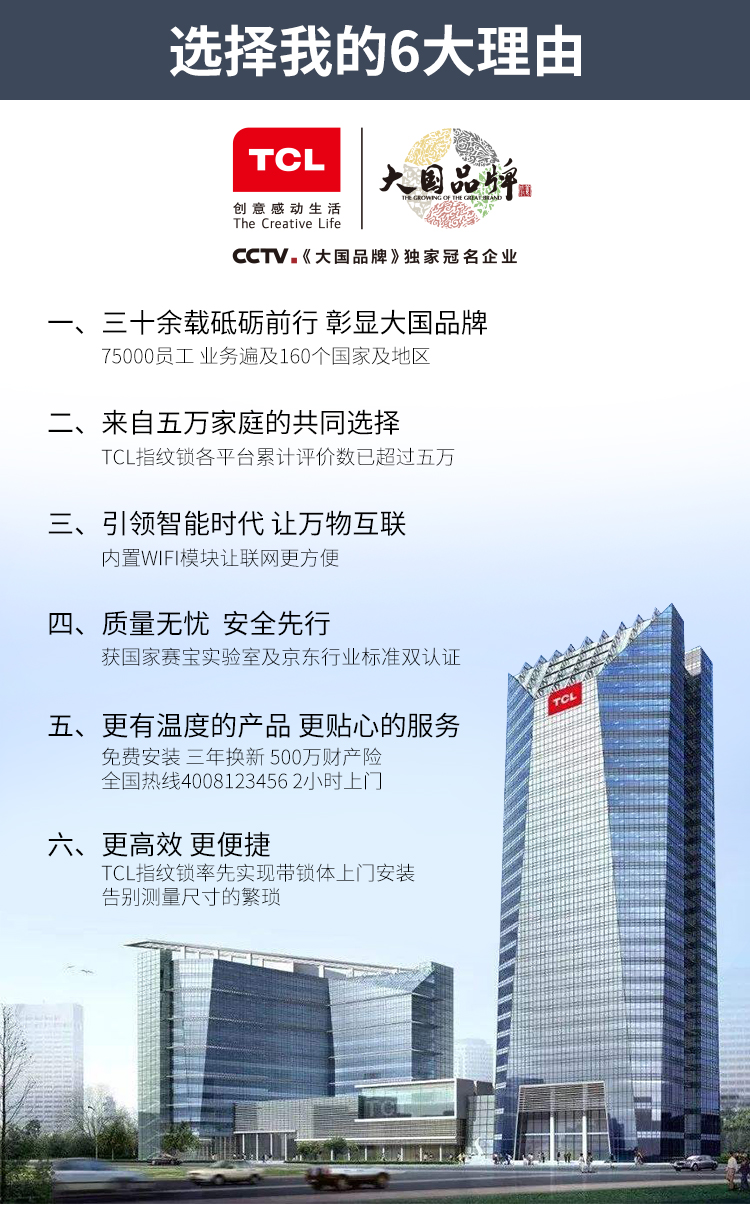 商品名称:TCL指纹锁智能锁指纹锁防盗门智能门锁密码锁 指纹锁家用防盗门锁 【性价比青春款】全镜面设计【活动2】