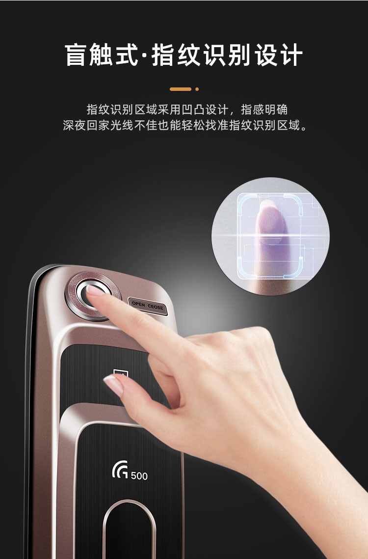 商品名称:盖德曼指纹锁 家用智能锁 电子锁防盗门锁 滑盖密码锁 G500红古铜