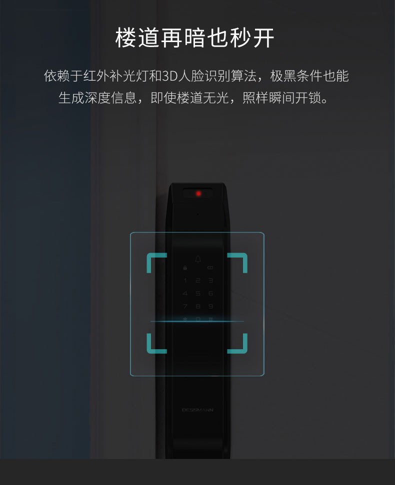德施曼(DESSMANN) R7指纹锁智能锁 3D人脸识别 刷脸秒开 全自动直觉式解锁 电子密码锁 高端黑