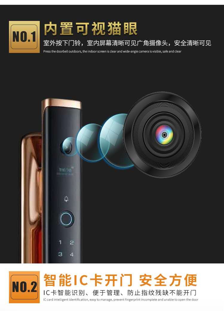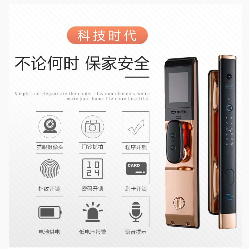 商品名称:启贝全自动家用防盗门指纹锁智能猫眼电子密码锁远程控制人脸抓拍智能门锁 香槟金 基础版+指导安装+3年质保
