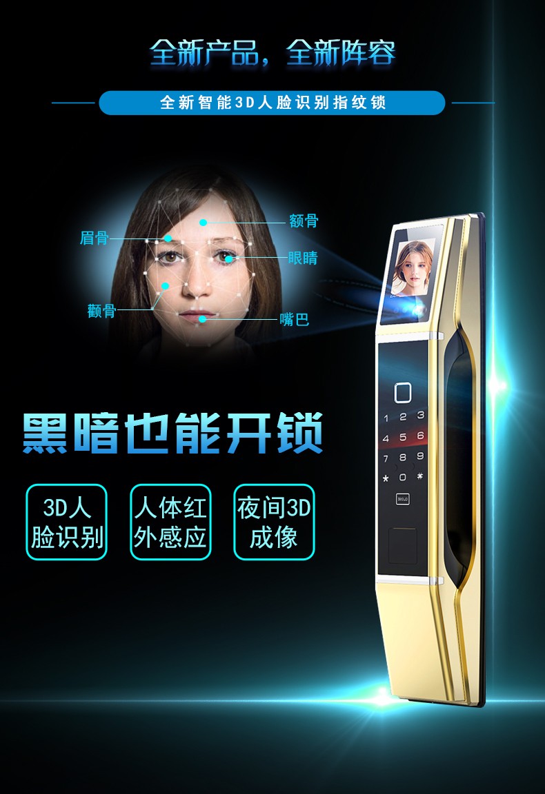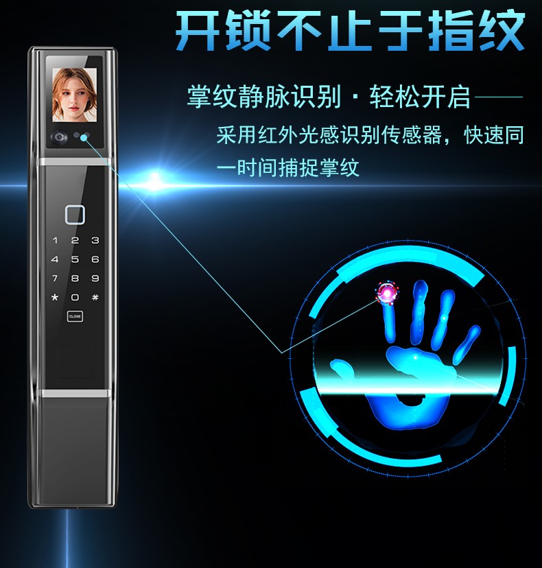 商品名称:佰德龙 Q9人脸识别指纹锁智能锁防盗门电子密码锁APP掌纹全自动智能门锁 红古铜 双开门 装饰锁+真锁套装