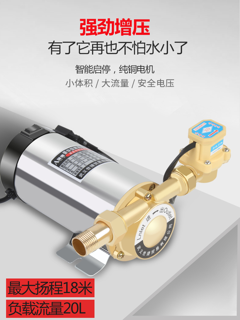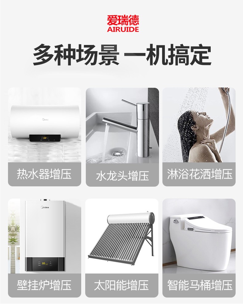 商品名称:爱瑞德增压泵 家用全自动热水器自来水加压泵微型管道水泵全国上门安装 100W自动增压泵