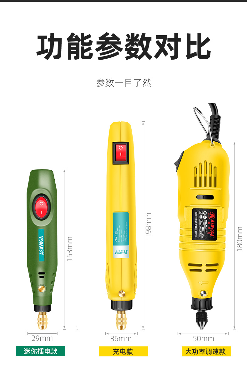 商品名称:阿斯珈(ASOYOGA)电磨机小型迷你玉石雕刻机抛光切割打磨机小电钻电磨笔头雕刻工具电动 木根雕文玩 【升级款】强劲动力/新风散热/工业级同心度