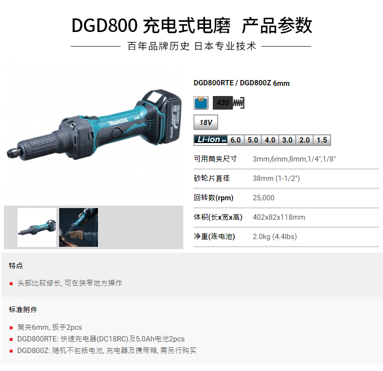 商品名称:makita牧田电磨DGD800充电式锂电18v雕刻机电动打磨电磨机