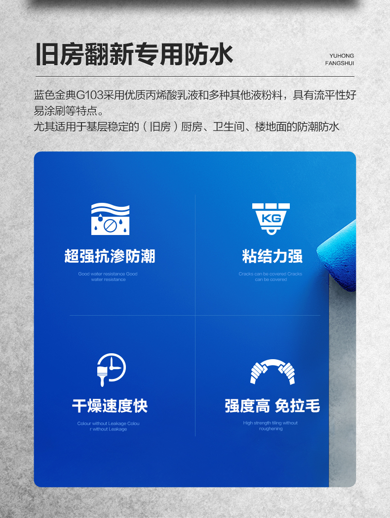 商品名称:雨虹防水 东方雨虹蓝色金典G103 卫生间厨房 旧房翻新 外墙防水涂料 1桶17KG
