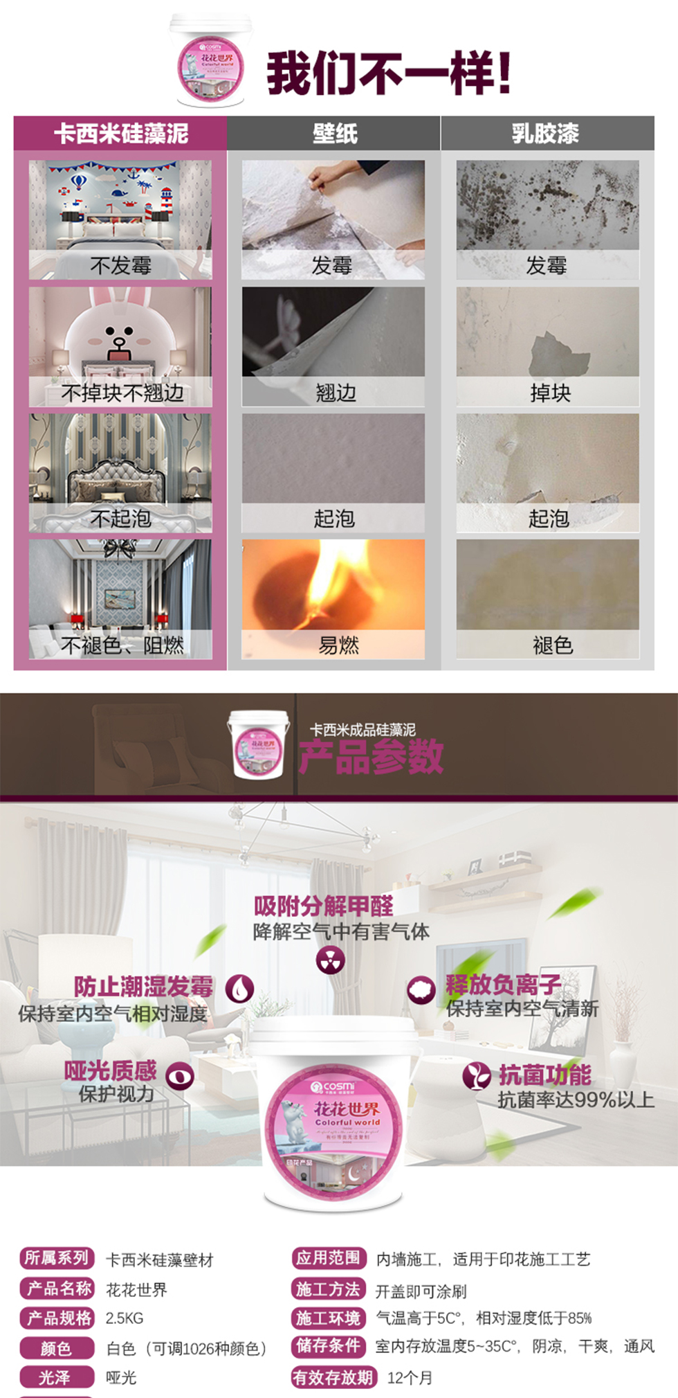 商品名称:卡西米(cosmi) 卡西米硅藻泥 印花面材 环保内墙涂料 替代墙纸 定制祛甲醛 涂料