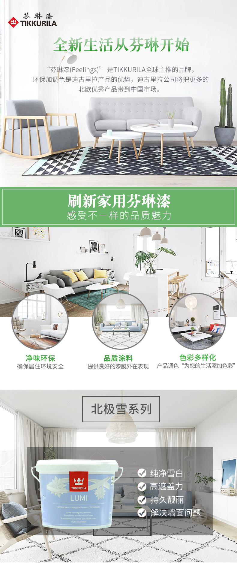 居然之家芬琳 漆北极雪超白内墙乳胶漆白色墙面漆 进口油漆涂料套装(2.7L*3)送货上门