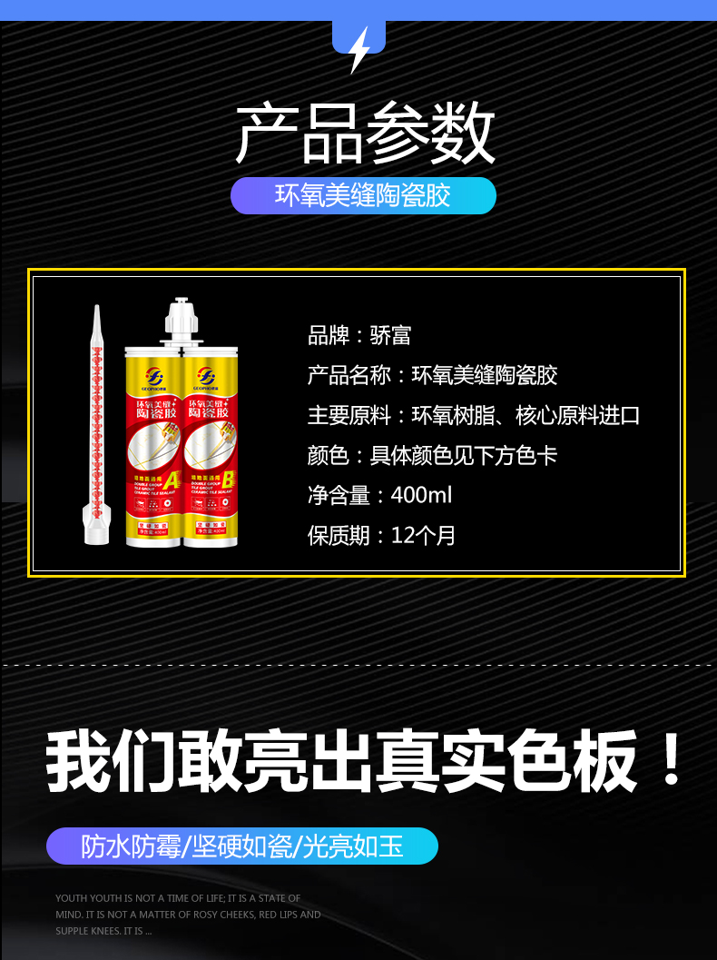 商品名称:骄富 瓷砖美缝剂 墙砖地砖填缝剂 瓷美缝剂 AB双组份防霉防水勾缝剂400ml 贵族金
