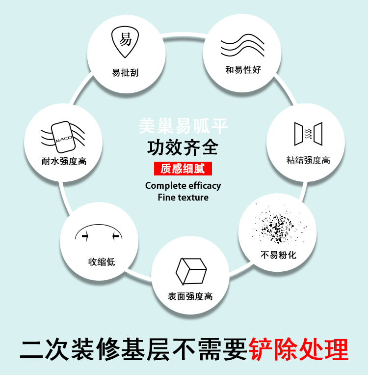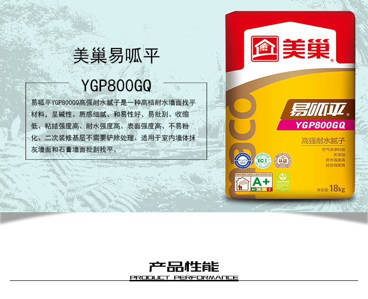 商品名称:美巢易呱平YGP800GQ高强耐水腻子粉18KG易刮平补墙膏内墙涂料防霉防水腻子无甲醛绿色环保