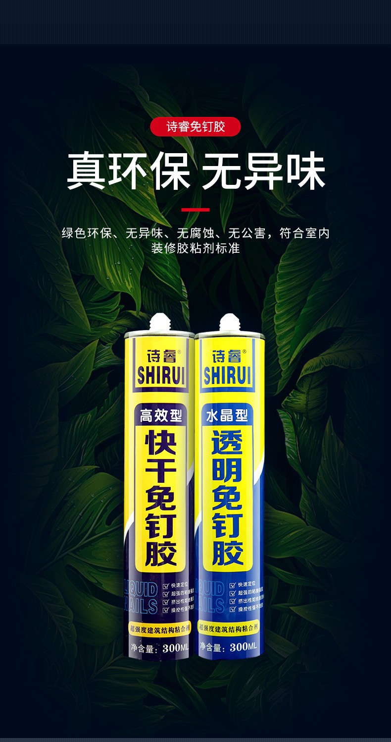 诗睿 免钉胶 玻璃胶 多用途强力液体钉 强力胶 高强度液体胶 环保型高效快干胶 室内外通用密封胶 白色(环保快干型) 300ml
