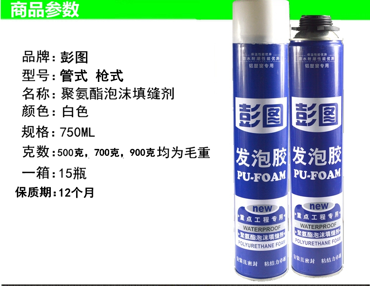 商品名称:聚氨酯发泡剂填缝剂泡沫胶膨胀填充剂门窗防水堵洞补缝补漏发泡胶 枪管一体【750ml/500g】送胶管