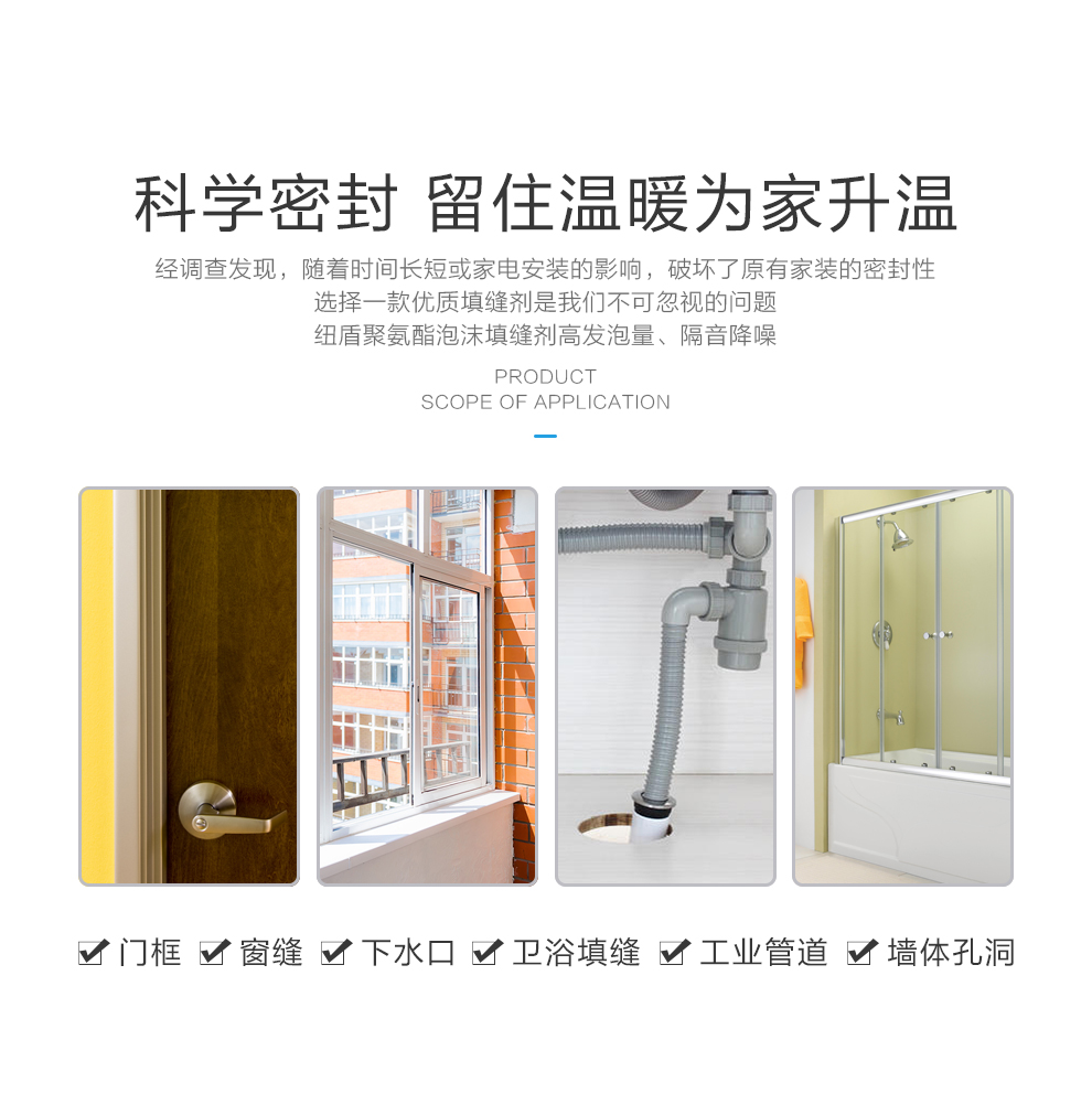 商品名称:纽盾 聚氨酯发泡胶 填缝泡沫胶发泡剂 泡沫填缝剂门窗密封膨胀胶 隔音保温降噪防水填充剂堵洞 枪管通用