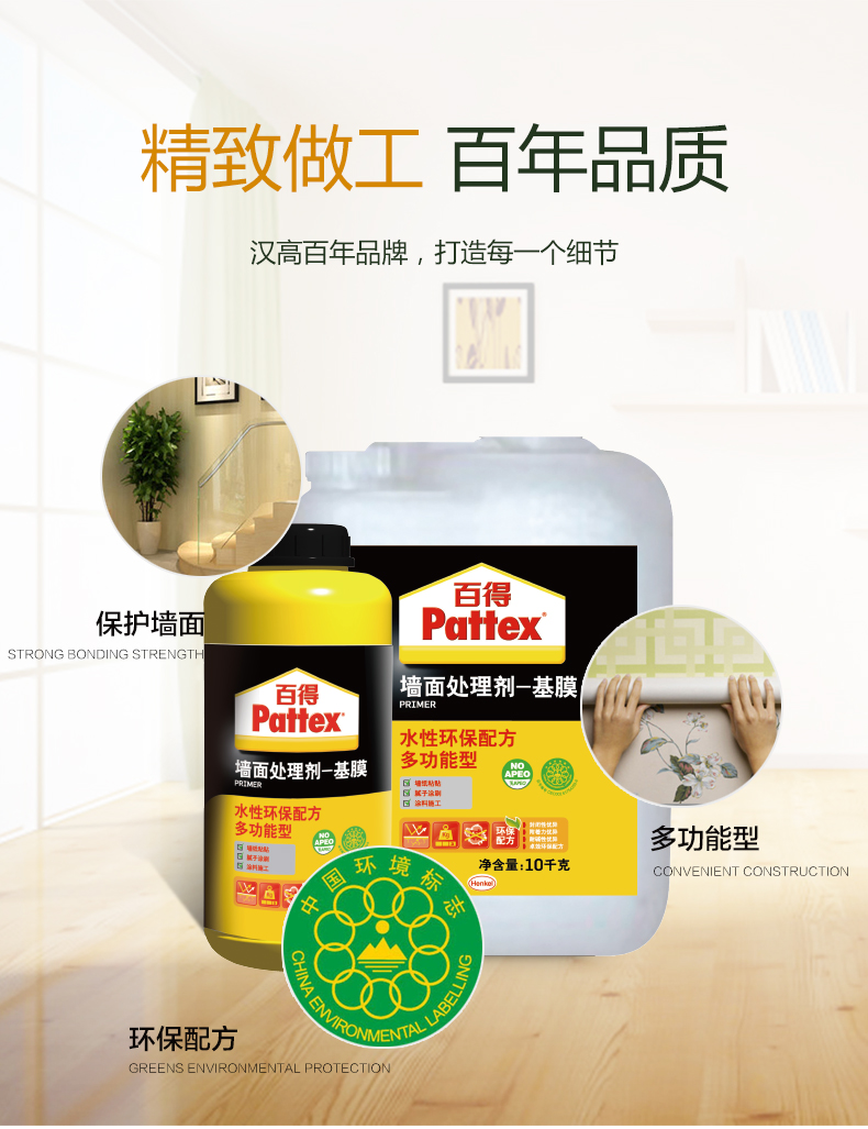 百得(Pattex) 汉高百得 墙纸胶壁纸胶水性墙面处理剂墙纸基膜界面剂多功能墙面处理剂 MI30L 10KG