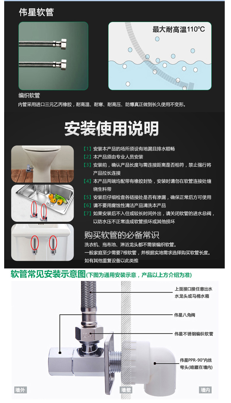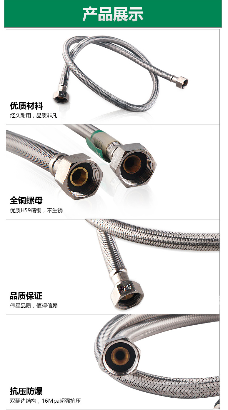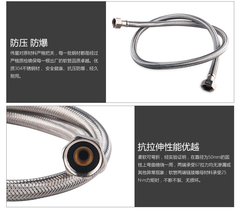 商品名称:伟星 上水管 不锈钢编织软管 双头螺帽进水管 马桶/水龙头上水管 60cm抗压上水管 2条装