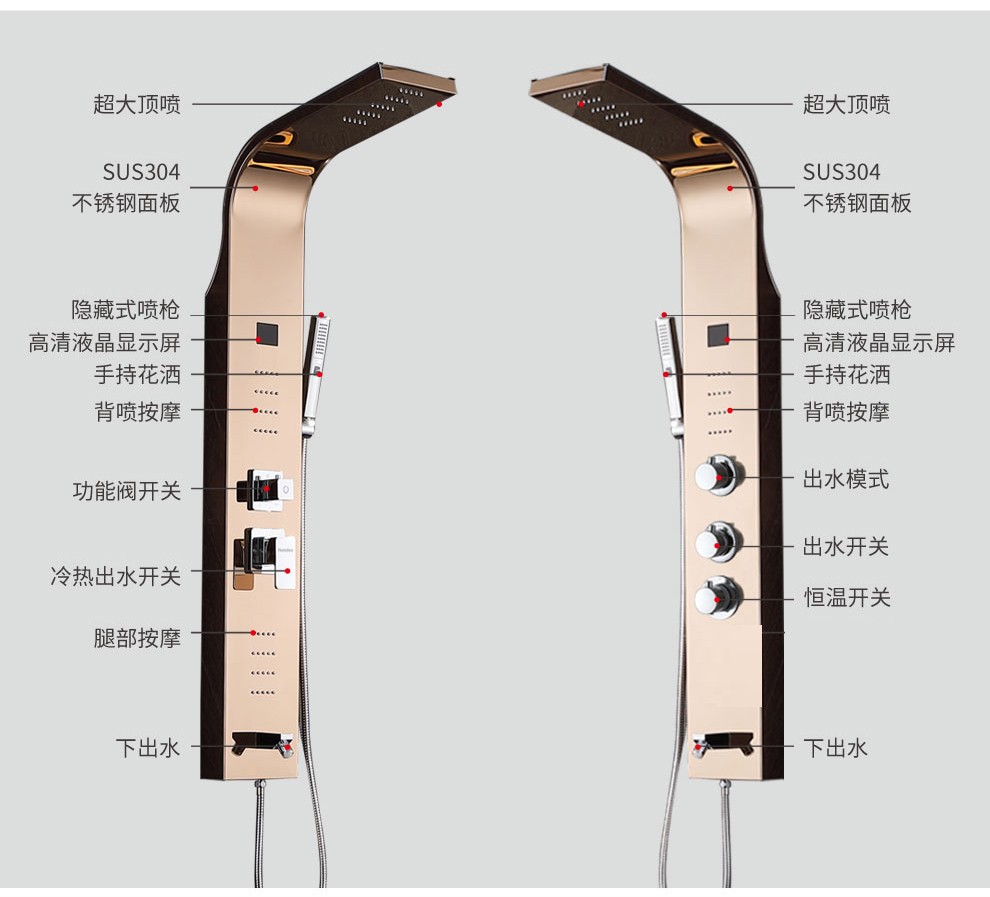 商品名称:德国净德仕(Netdes)淋浴屏欧式淋浴花洒套装水力发电带LED灯淋浴柱淋浴器 L-505土豪金