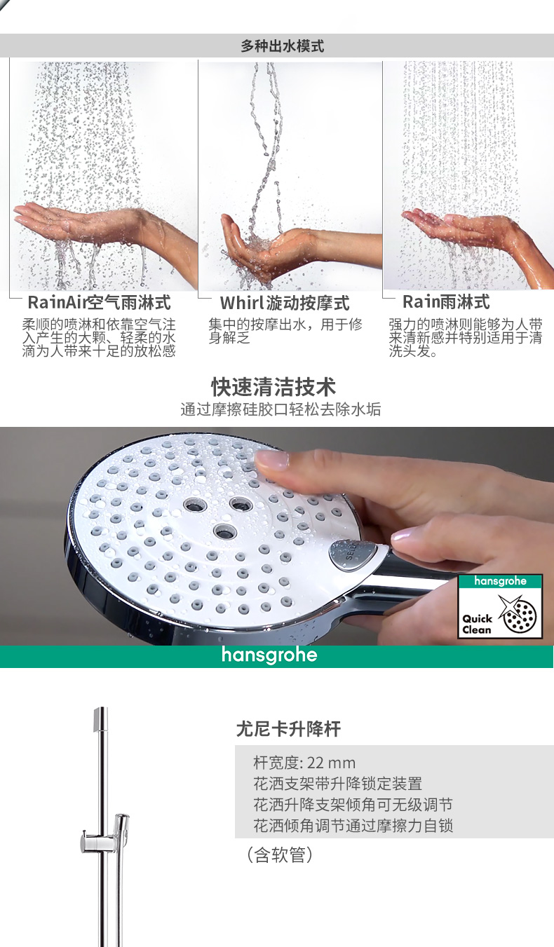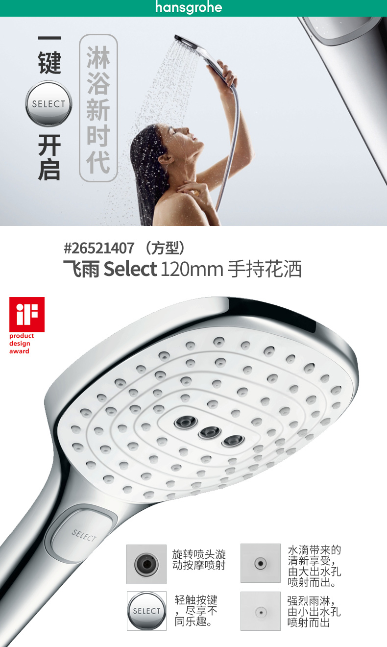 商品名称:汉斯格雅 Hansgrohe 飞雨Select S120 3速节水型恒温下出水浴缸龙头套餐