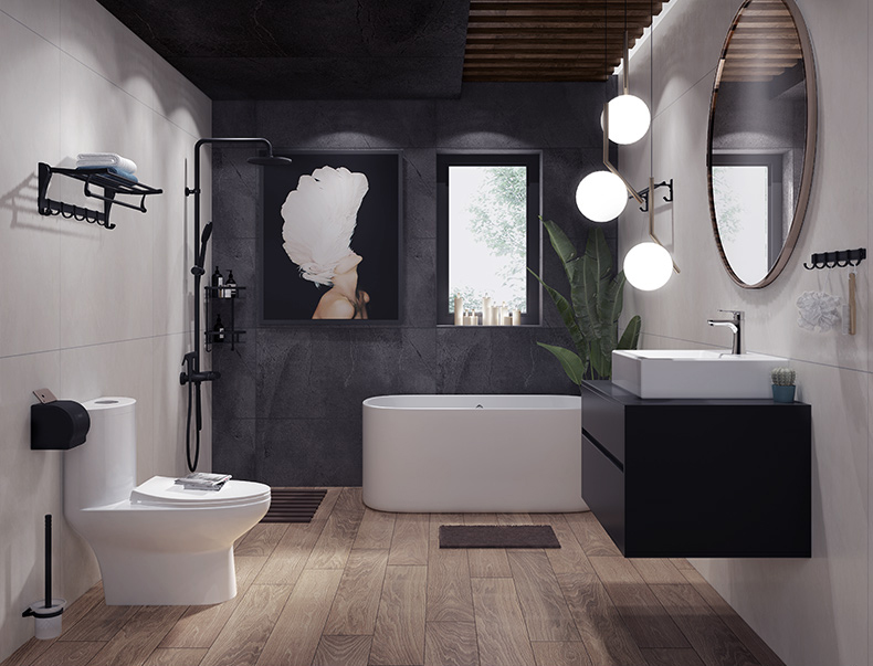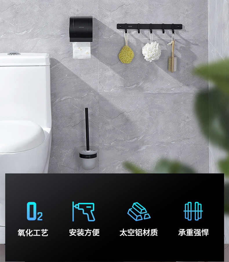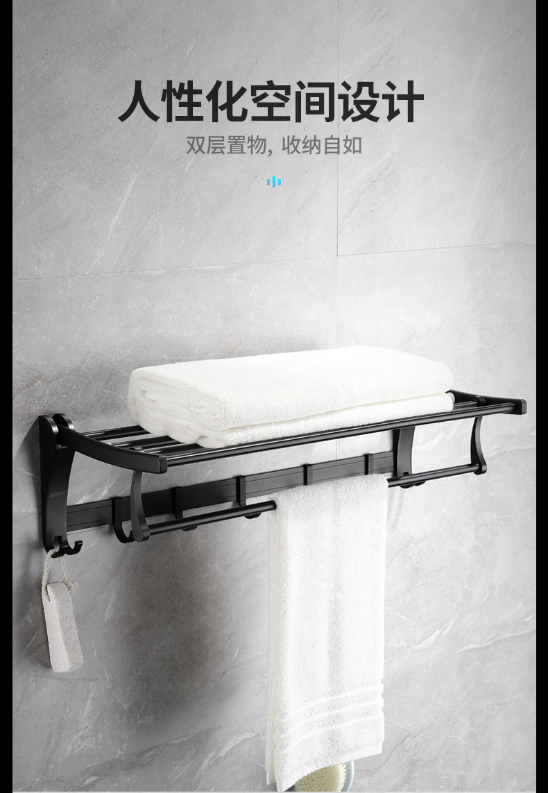 箭牌(ARROW)太空铝毛巾架杆浴巾架卫生间浴室置物架卫浴黑色五金挂件套装AE5638TZ-6