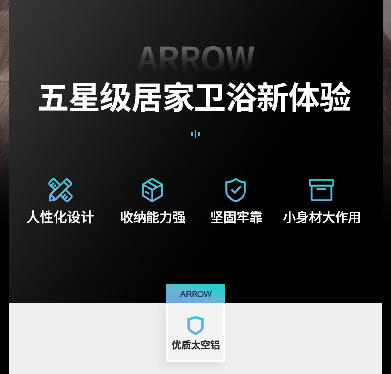 商品名称:箭牌(ARROW)太空铝毛巾架杆浴巾架卫生间浴室置物架卫浴黑色五金挂件套装AE5638TZ-6