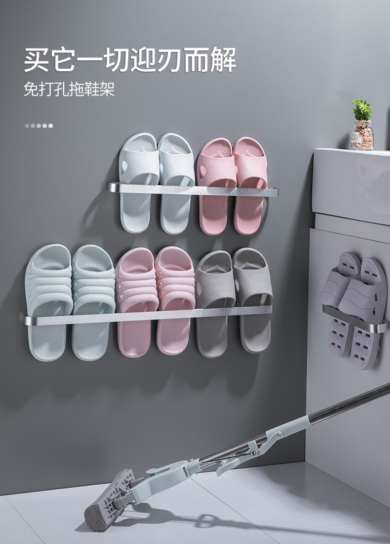 商品名称:一卫(yweel)浴室拖鞋架壁挂免打孔卫生间收纳神器厕所沥水挂架墙上门后置物架 94133-免打孔拖鞋架双人款45cm哑光