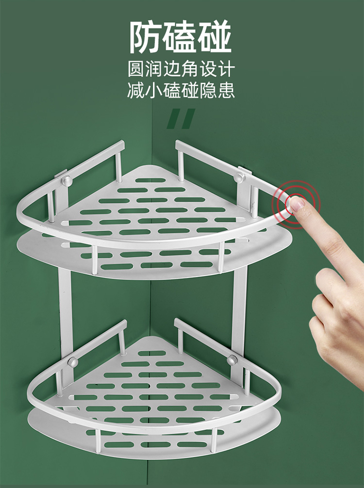 贝乐卫浴(Ballee)TL602 免打孔浴室三角网篮 双层卫生间置物架 太空铝挂件