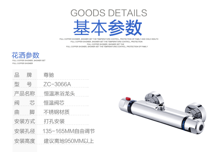 商品名称:尊驰卫浴混水阀暗装恒温阀恒温水龙头冷热3066