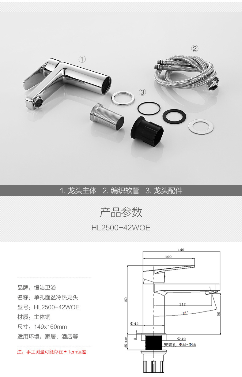 商品名称:恒洁(HEGII)浴室柜安装专用龙头配件
