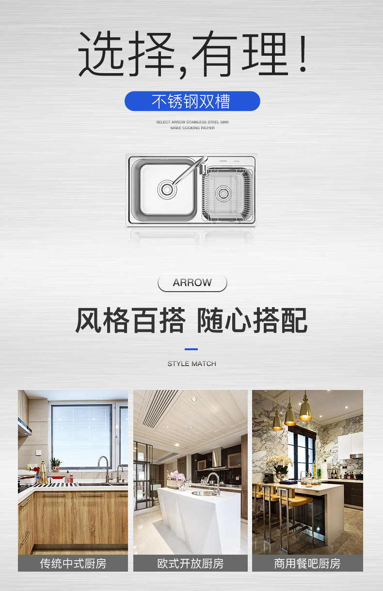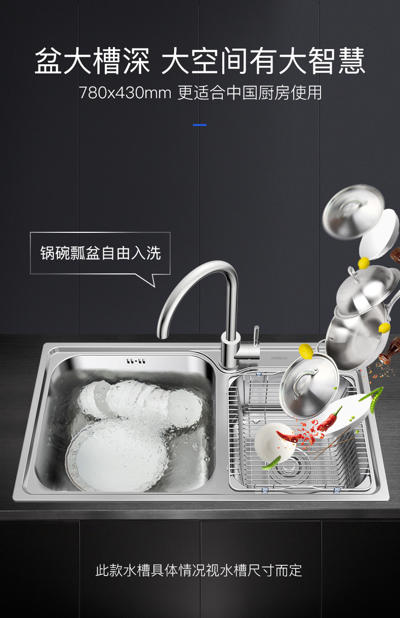 商品名称:箭牌卫浴(ARROW)厨房304不锈钢水槽洗碗盆洗菜盆双槽套餐配龙头 爵士款780*430*210