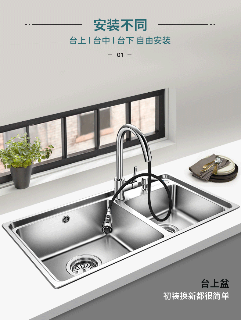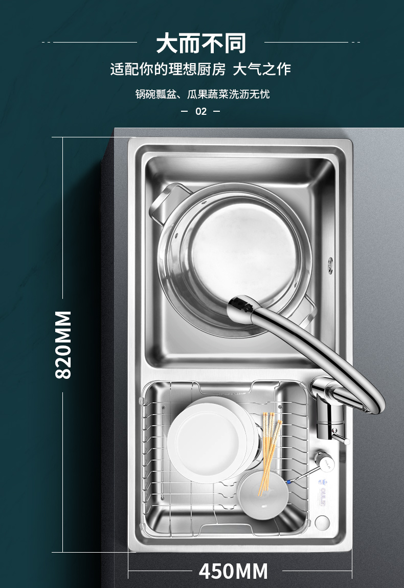 • 其它特性:纳米银离子防臭落水系统、后孔位设计