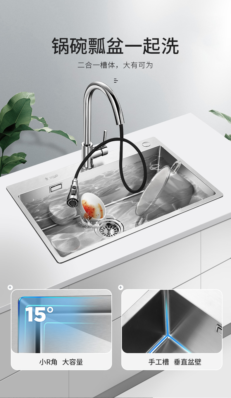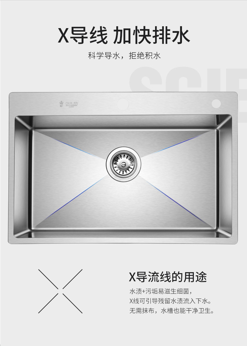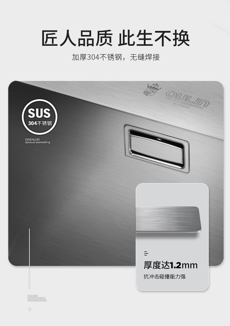 商品名称:欧琳(OULIN)手工水槽单槽洗菜盆304不锈钢加厚厨房洗碗池套装洗菜池台上盆WGR9104 配CFL002精铜双出水抽拉龙头