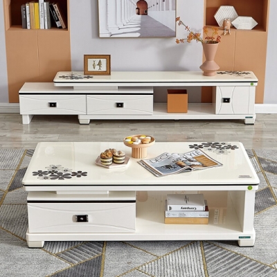 全友 茶几电视柜组合套装 现代简约客厅家具全友家居小户型茶几电视柜可伸缩电视柜120358 茶几+电视柜