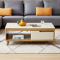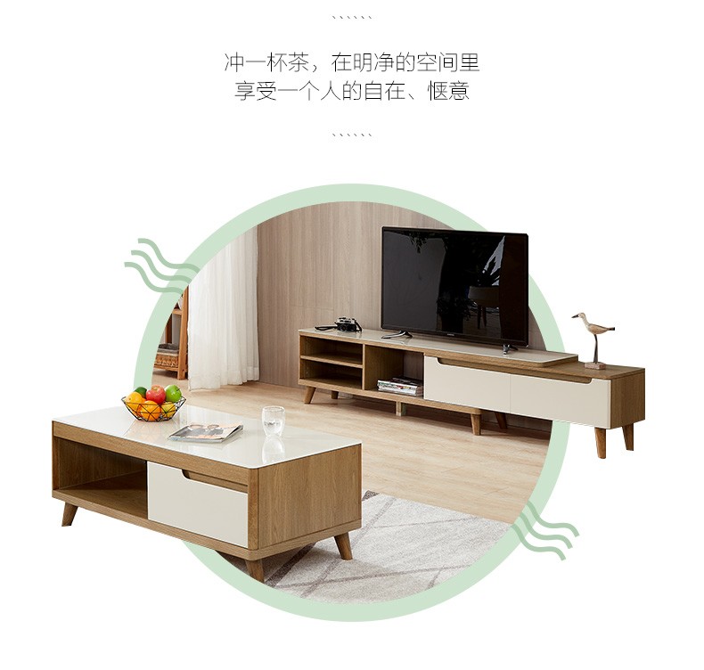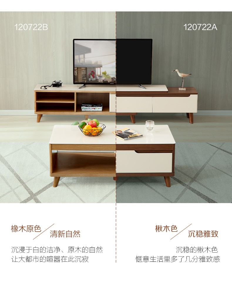 (直降)全友家居 木纹电视柜茶几组合 简约钢化玻璃台面客厅储物柜 北欧可伸缩电视柜 120722 茶几B+电视柜B