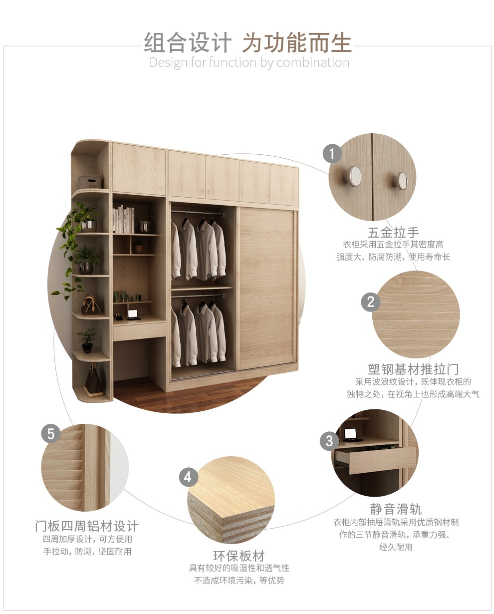 商品名称:【品牌秒杀】慕尼思丹 衣柜 木纹衣柜 推拉门衣柜 整体大衣橱 卧室家具 北欧新中式卧室储物柜 衣柜+转角柜【高度2.1米】 【单柜体宽1.6米】