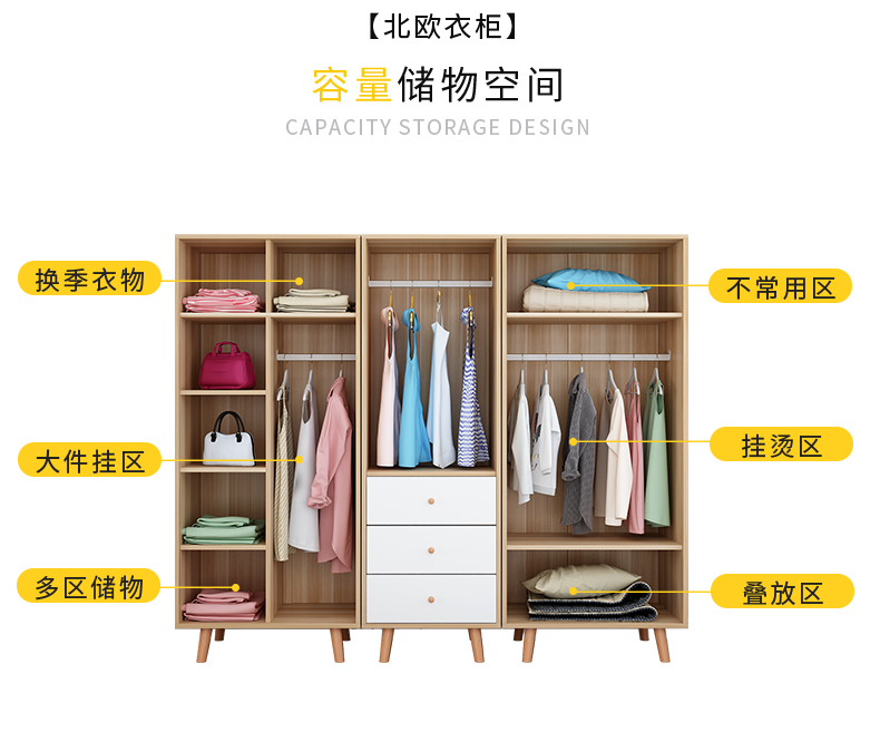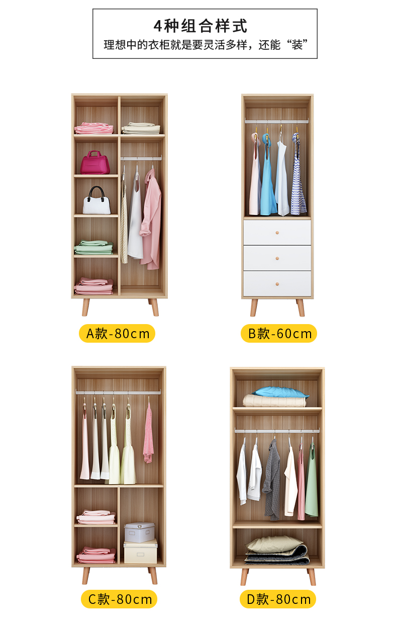 商品名称:容梦缘衣柜北欧现代简约二门推拉门移门衣橱经济型简易实木榉木腿小衣柜卧室衣橱板式欧式柜子小户型组装 平开门 D款-80cm