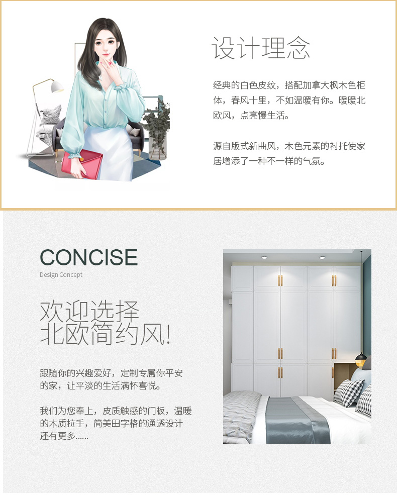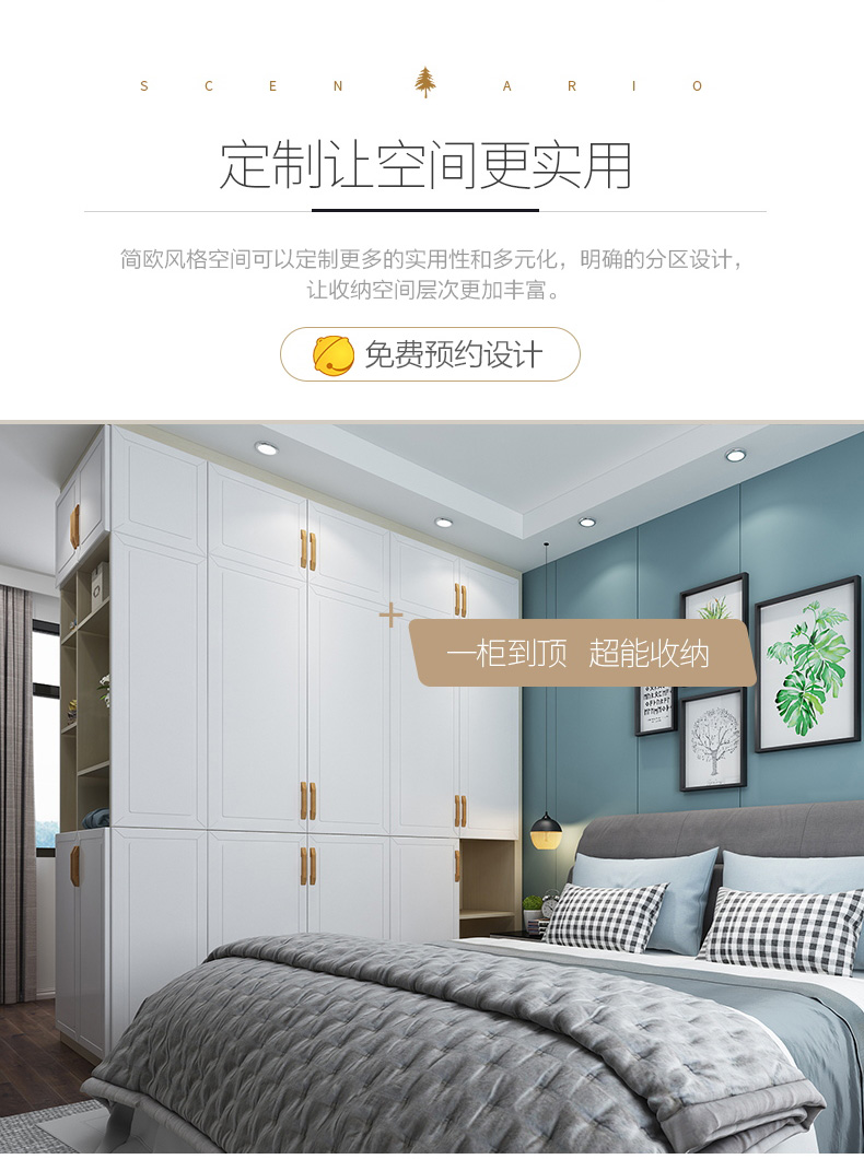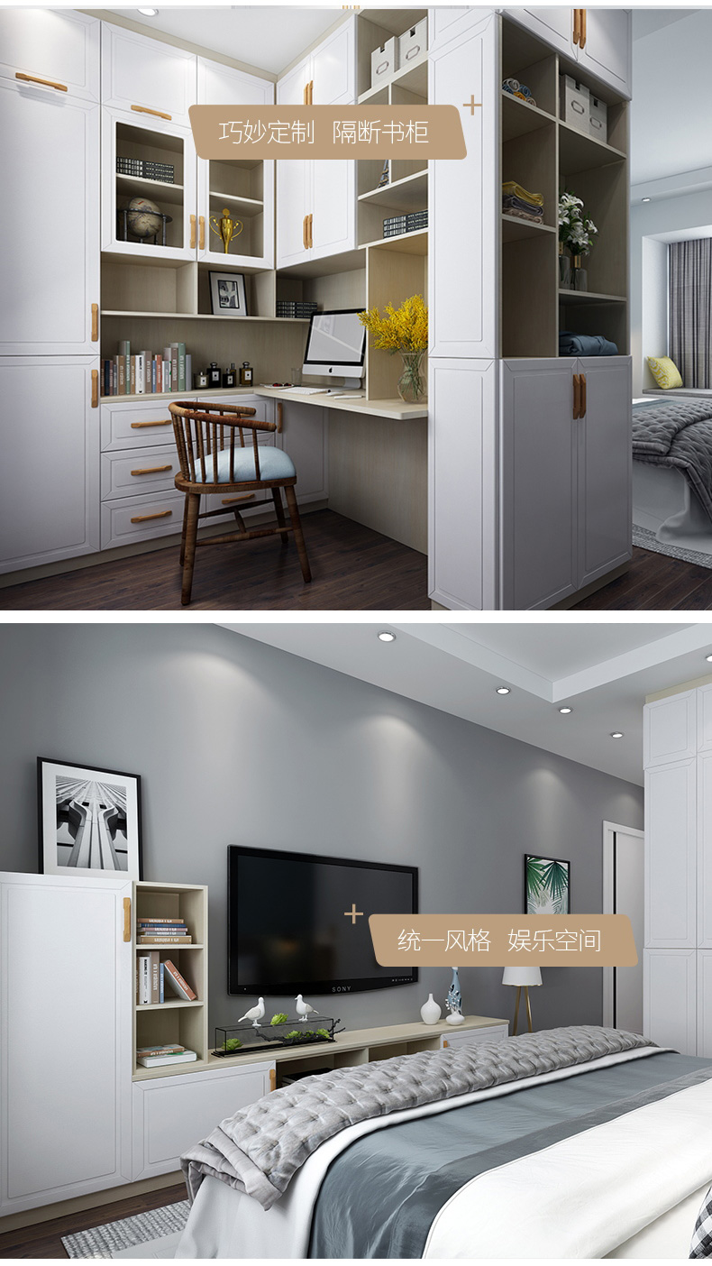 百得胜 定制衣柜 现代简约风格爱慕茶白卧室定制整体掩门推拉门衣柜 储物柜收纳衣帽间定制全屋空间家具 预付金 非商品价格