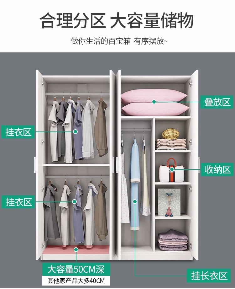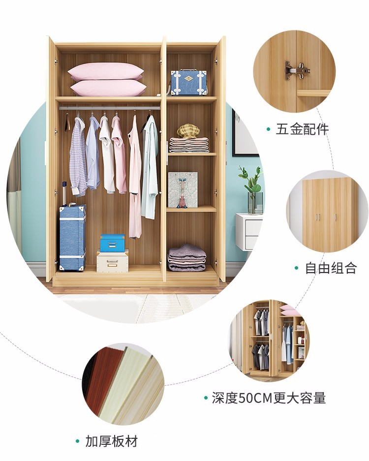 商品名称:思涵 衣柜现代简约实木板式组合衣柜衣橱储物柜衣架2门3门4门简易衣柜 浅胡桃色 2门(80*50*190cm)