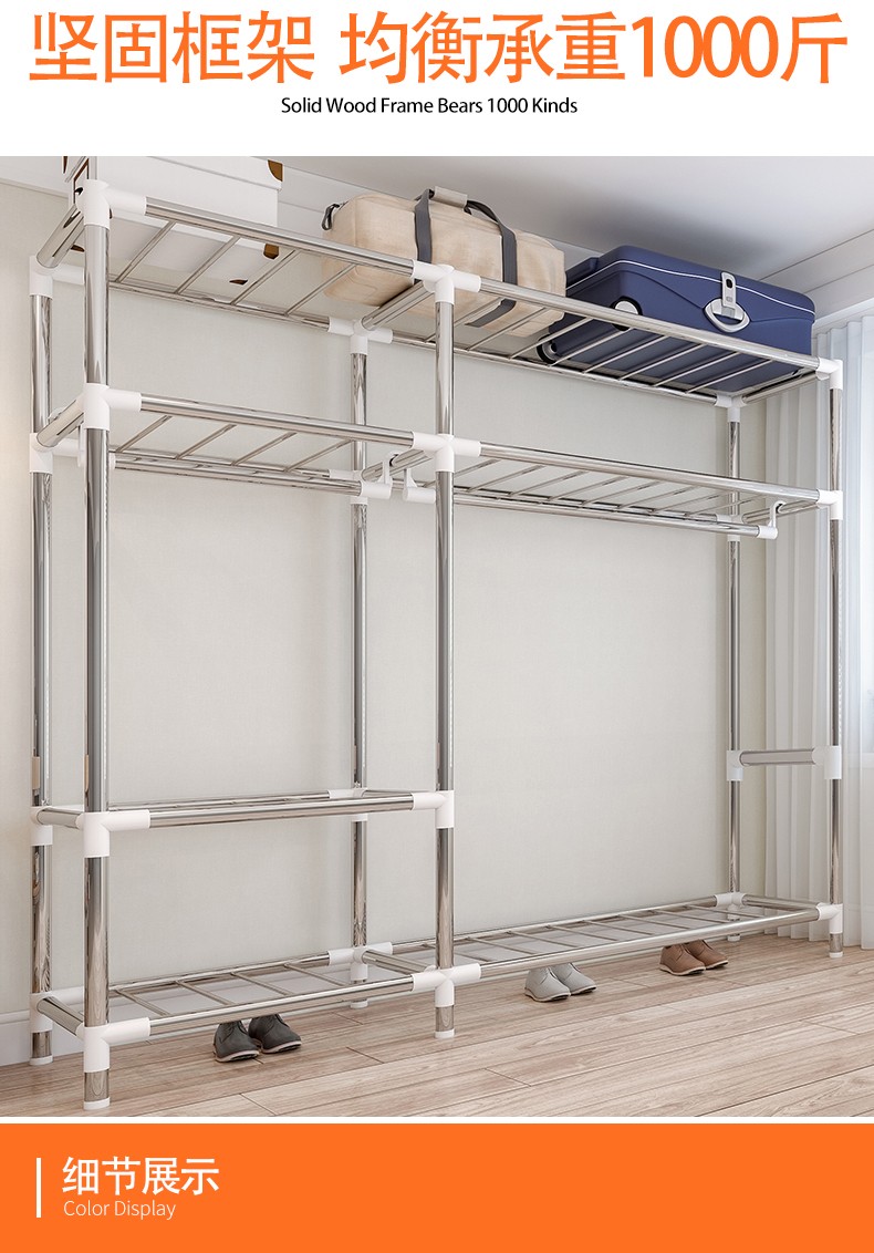 小媳妇衣柜子 简易多功能卧室布衣柜钢管加厚加粗组装衣柜布大号双人钢架组装家具衣柜收纳衣橱 2533烟雨江南