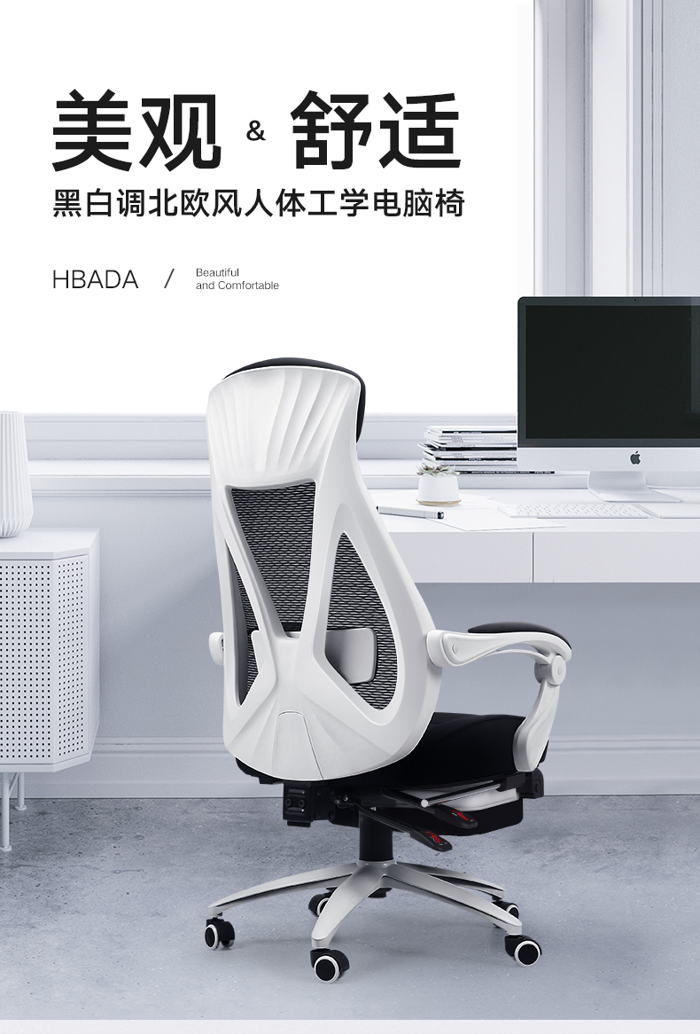 商品名称:黑白调(Hbada)电脑椅 办公椅子 靠背椅 电竞椅 带脚托可躺 白色077WSJ