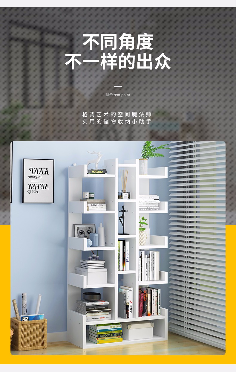 商品名称:亿家达书架学生落地书柜简易置物架移动简易书架转角靠墙文件架组合书架子 【D款带抽屉15层】暖白色51cm