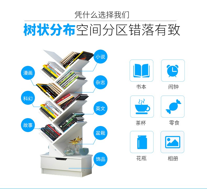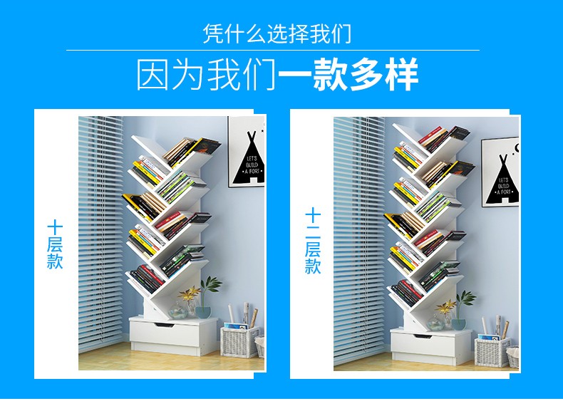 商品名称:亿家达书柜书架简易组合层架创意落地小书架桌上 暖白十层