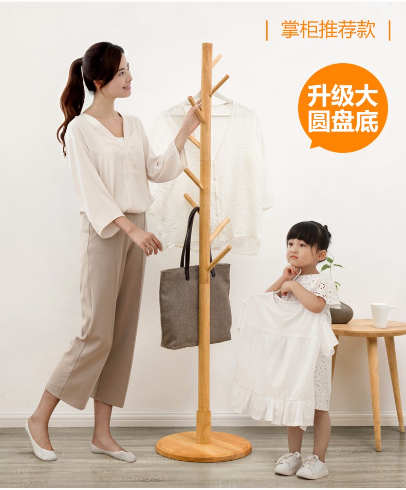 商品名称:木马人实木衣帽架衣架落地简易卧室客厅挂衣架立式衣服架子办公室现代简约鞋架多层室内收纳架置物架 圆柱款-原色