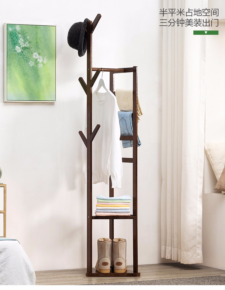 商品名称:木马人 多挂简易衣帽架室内实木卧室挂衣架简约现代楠竹衣服架子落地衣架收纳架置物架层架收纳架 原色(经典款)