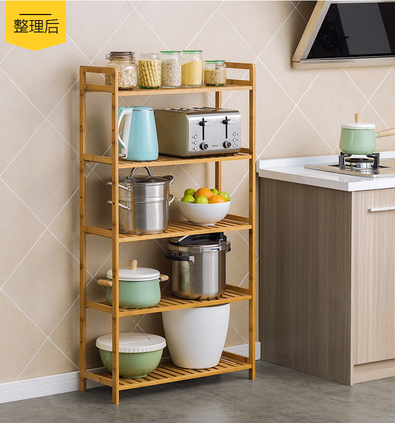 商品名称:木马人简易落地楠竹多层置物架书架实木收纳架储物架厨房微波炉架客厅卧室落地花架杂物架层架货架仓储家用架 5层68cm【层高可调】