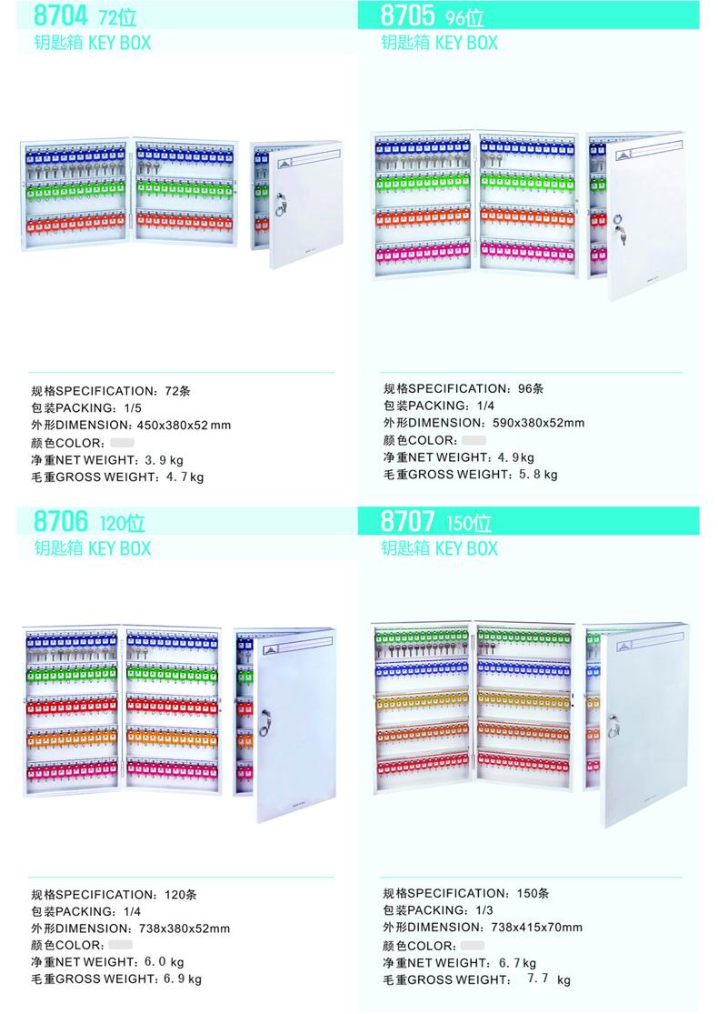 商品名称:杰丽斯(JIELISI)8707钥匙箱150位 全金属挂壁式钥匙柜 (送钥匙牌)