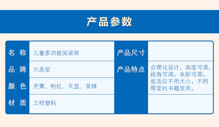 商品名称:六品堂 小学生儿童多功能看书架书夹阅读架书立夹书架支架读书架 天蓝色 展架/板夹/书立/笔筒及配件类
