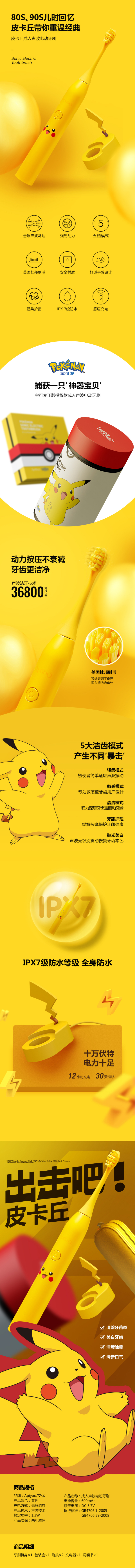 商品名称:艾优(apiyoo)皮卡丘成人声波电动牙刷 单套 黄色