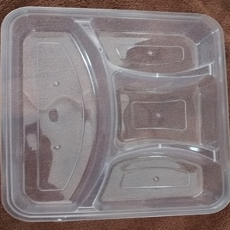 商品名称:百杰 493A 四格快餐盒 透明 微波炉可用 220*190*40mm 150套/箱