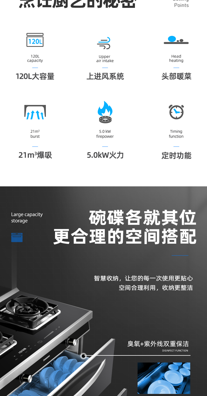 商品名称:长虹(ChongHong)集成灶消毒柜一体家用环保灶侧吸下排自动清洗抽油烟机燃气灶套装 A3X 管道天然气