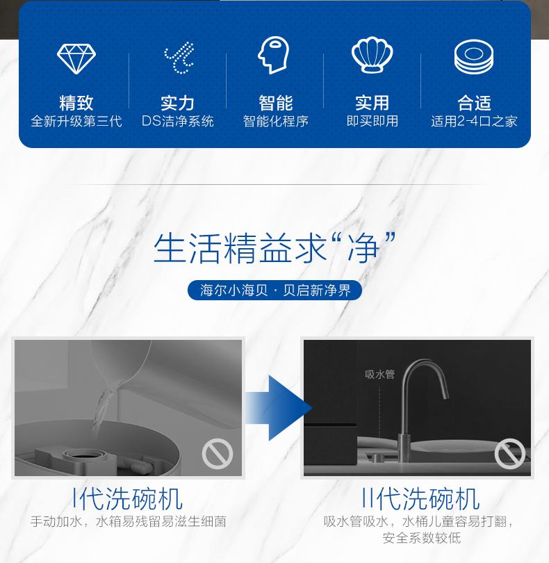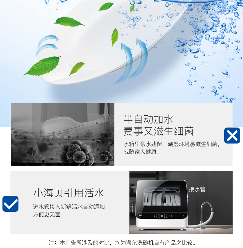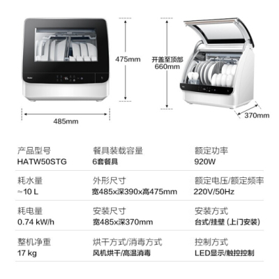 商品名称:海尔(Haier)HTAW50STGB小海贝洗碗机家用台式 全自动小型 风机烘干 高温除菌杀毒超快洗 黑色HTAW50STGB